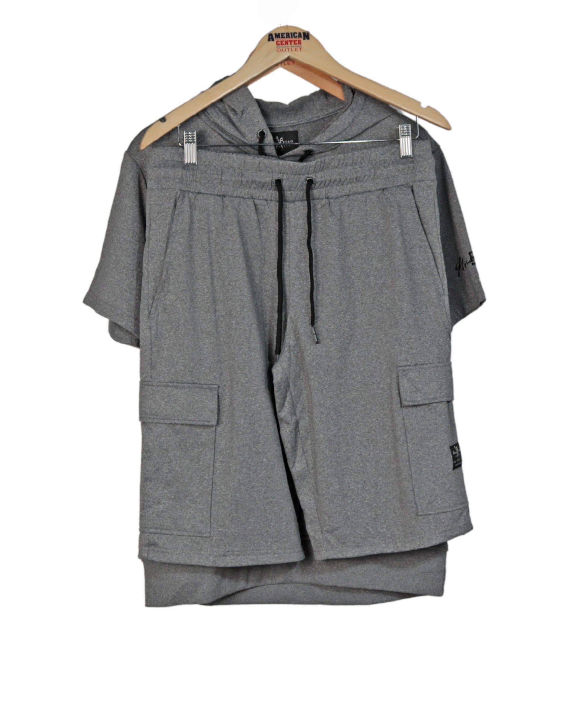Men, Relaxed Set 2 Pcs, Short Sleeve, Hooded, Fleece Soft Touch, Kangro Pocket, Comfort Stretch Pant, 4 Pockets, Casual, 97% Polyester, 3% Spandex