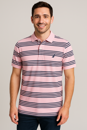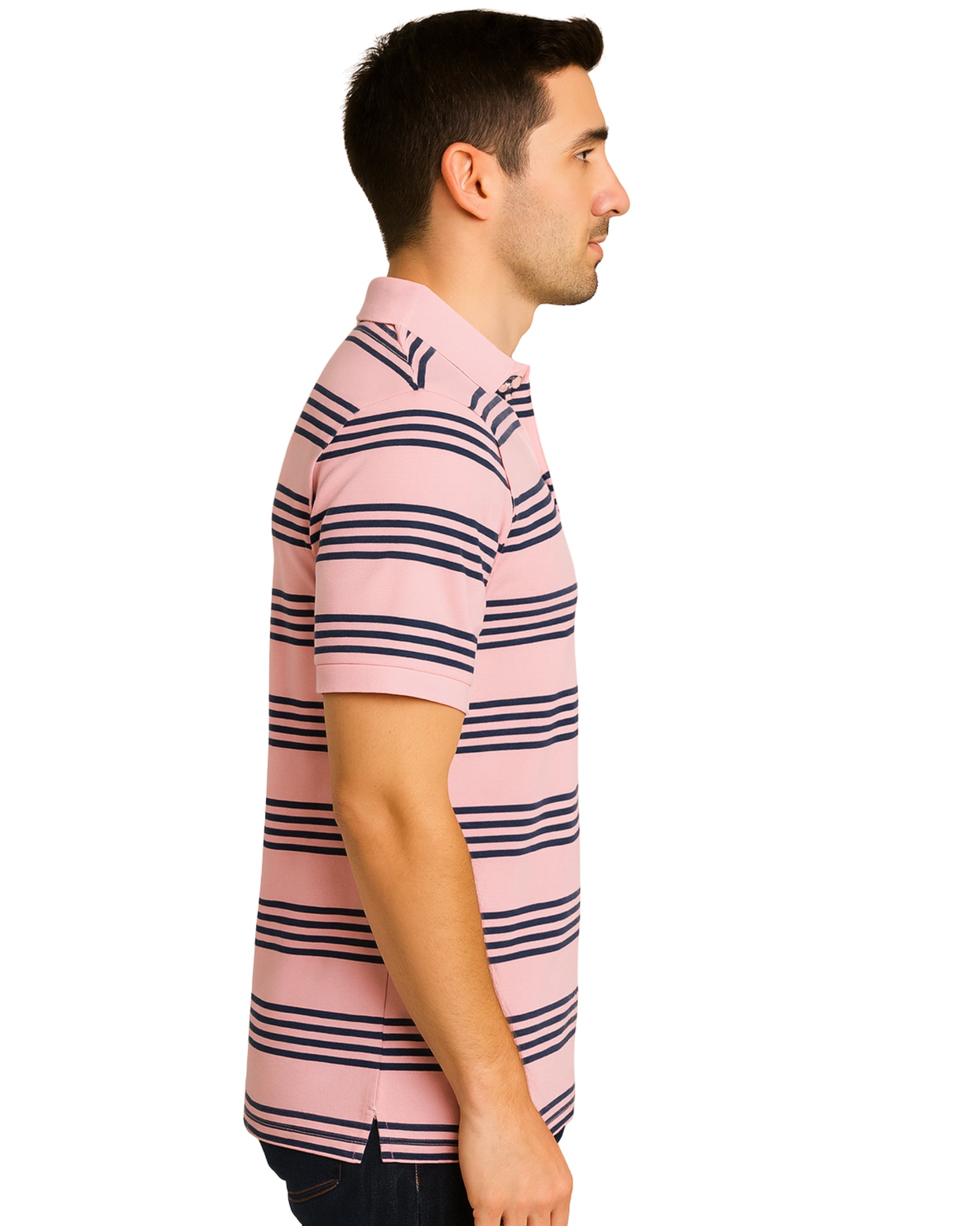 Men, Casual, Design, Striped, Polo Neck, Short Sleeve, 2 Button Closure