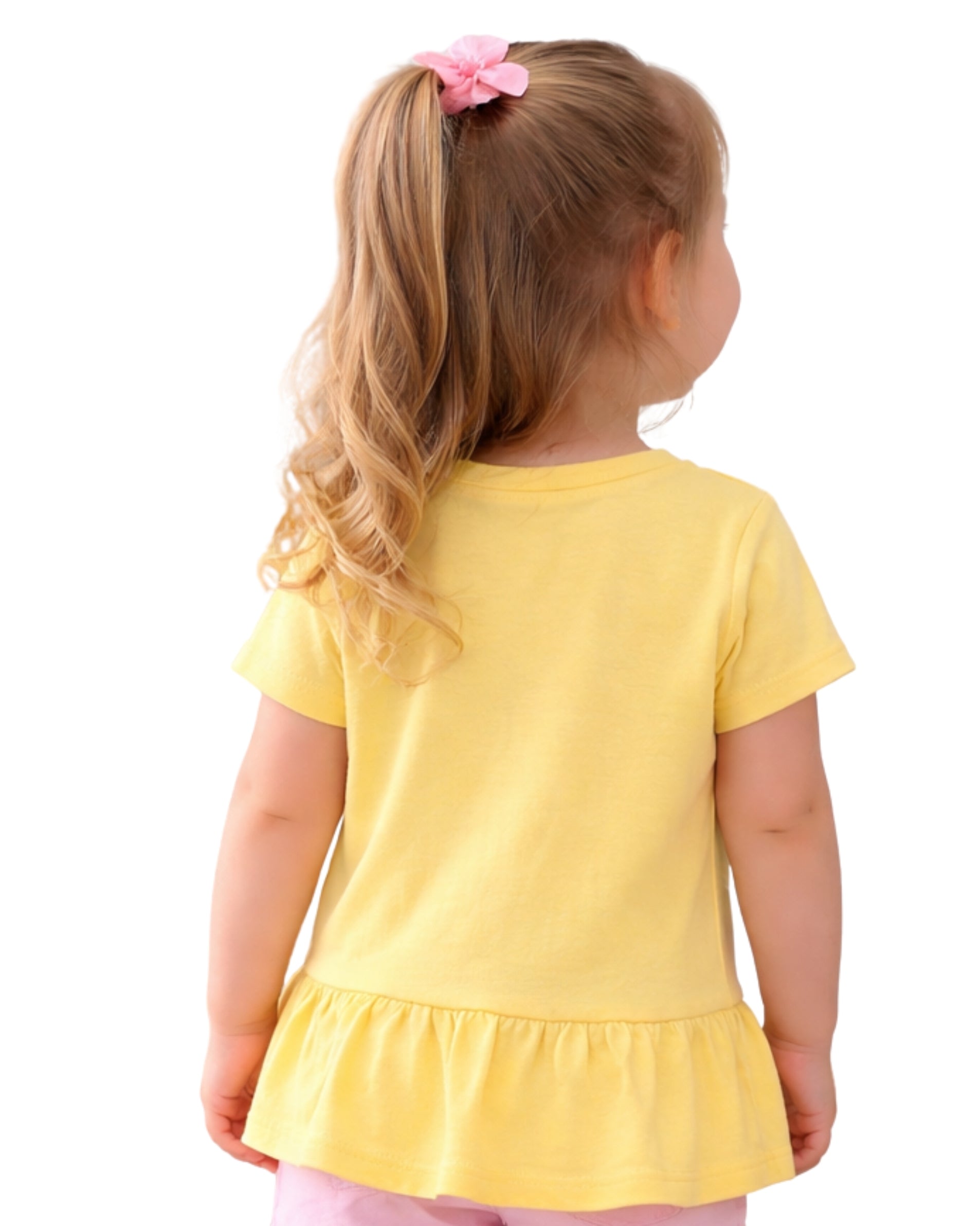 Baby Girls, Short Sleeve, Round Neck, Front Unicorn Graphic, Ruffle, Soft, Casual605 Cotton, 40% Polyester