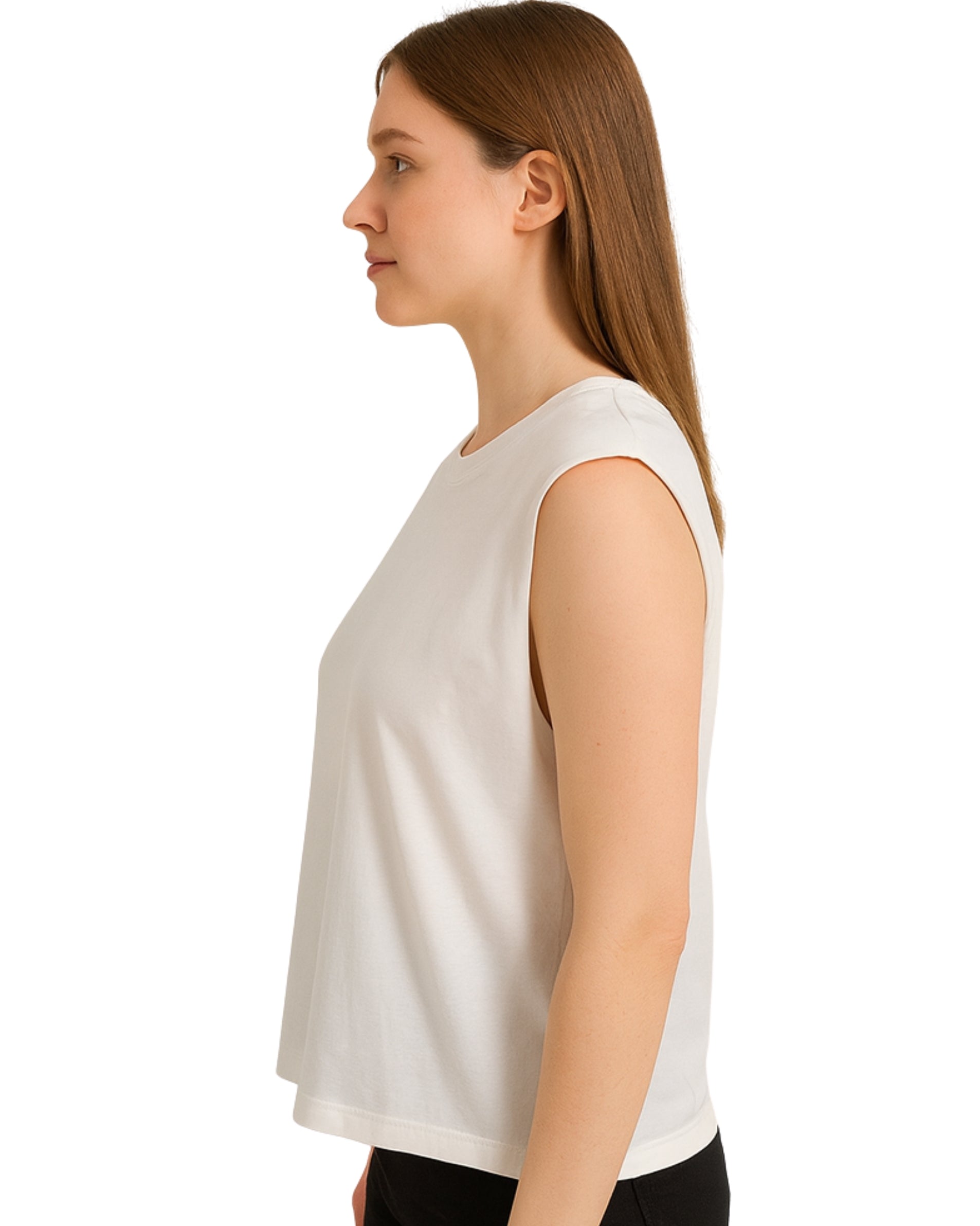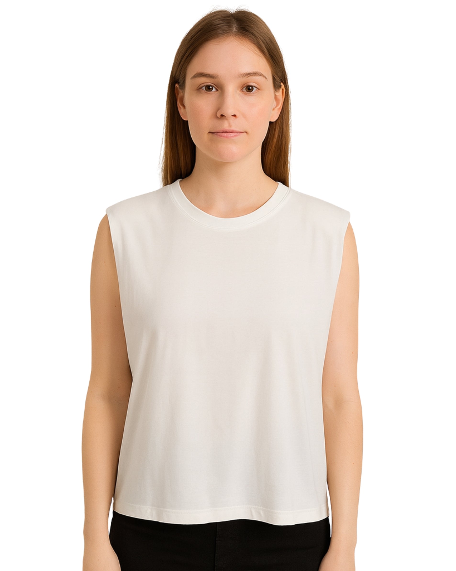 Sleeveless, Wide Strap, Crew Neck, Relaxed, Stretch, 78% Modal, 22% Polyetser