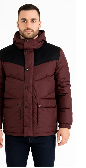 Men, Long Sleeve, Hooded, Full Zipper, Snap Button, 2 Pockets, Puff, Warm, Casual, 100% Polyamide