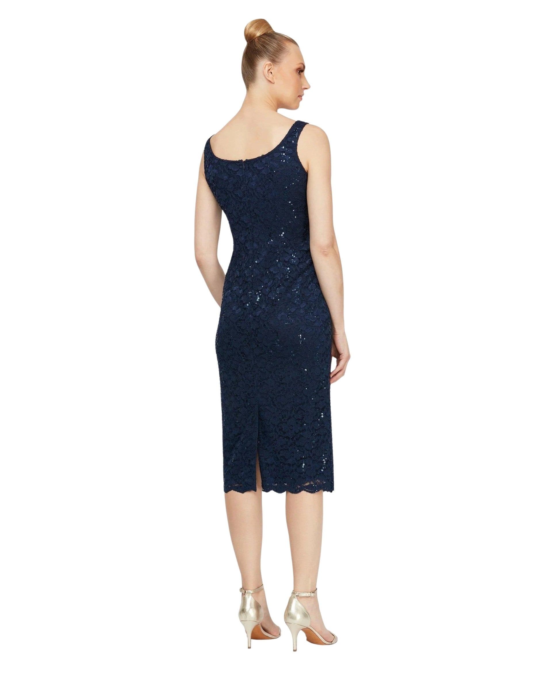 Women, Sleeveless, Square Neck, Back Zipper, Shimmering Lace Sequin, Tea Fitting Silhouette, 97% Polyester, 3% Licra