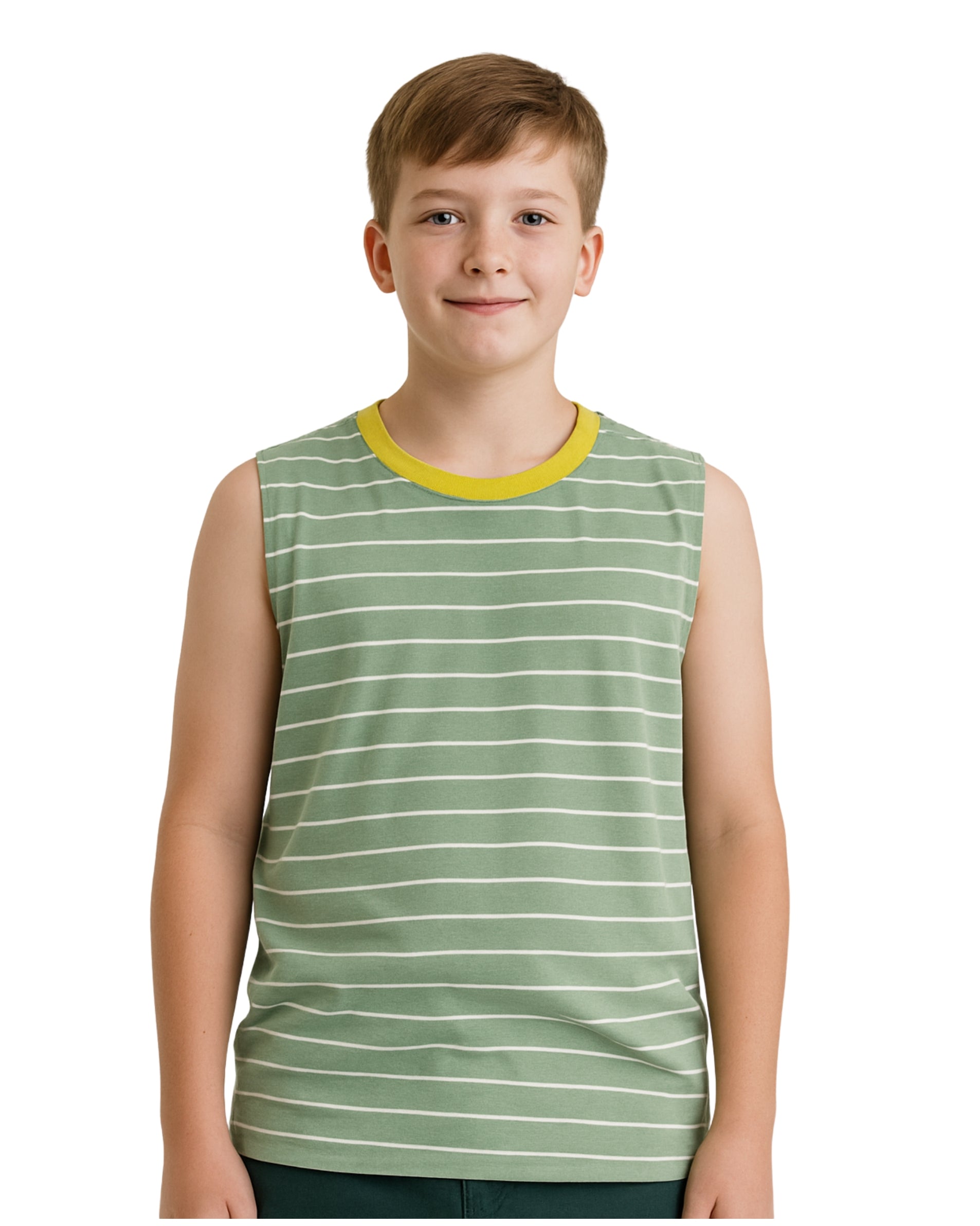 Kids, Boys, Stripped, Casual, Round Neck, Sleeveless, 60% Cotton, 40% Recycled Polyester
