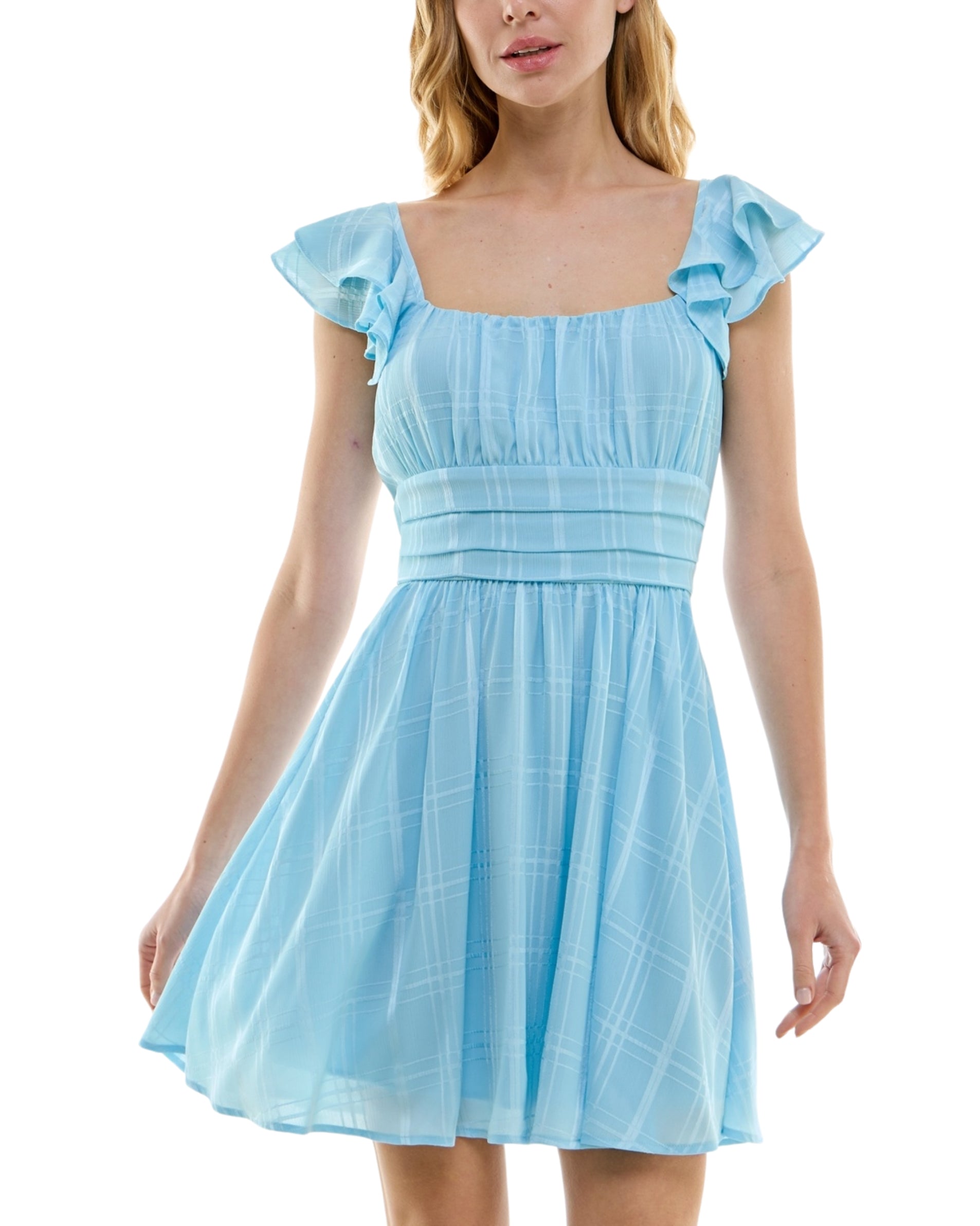 Women, Flutter Sleeve, Square Neck, Back Zipper, Fit & Flare, Chick & Stylish