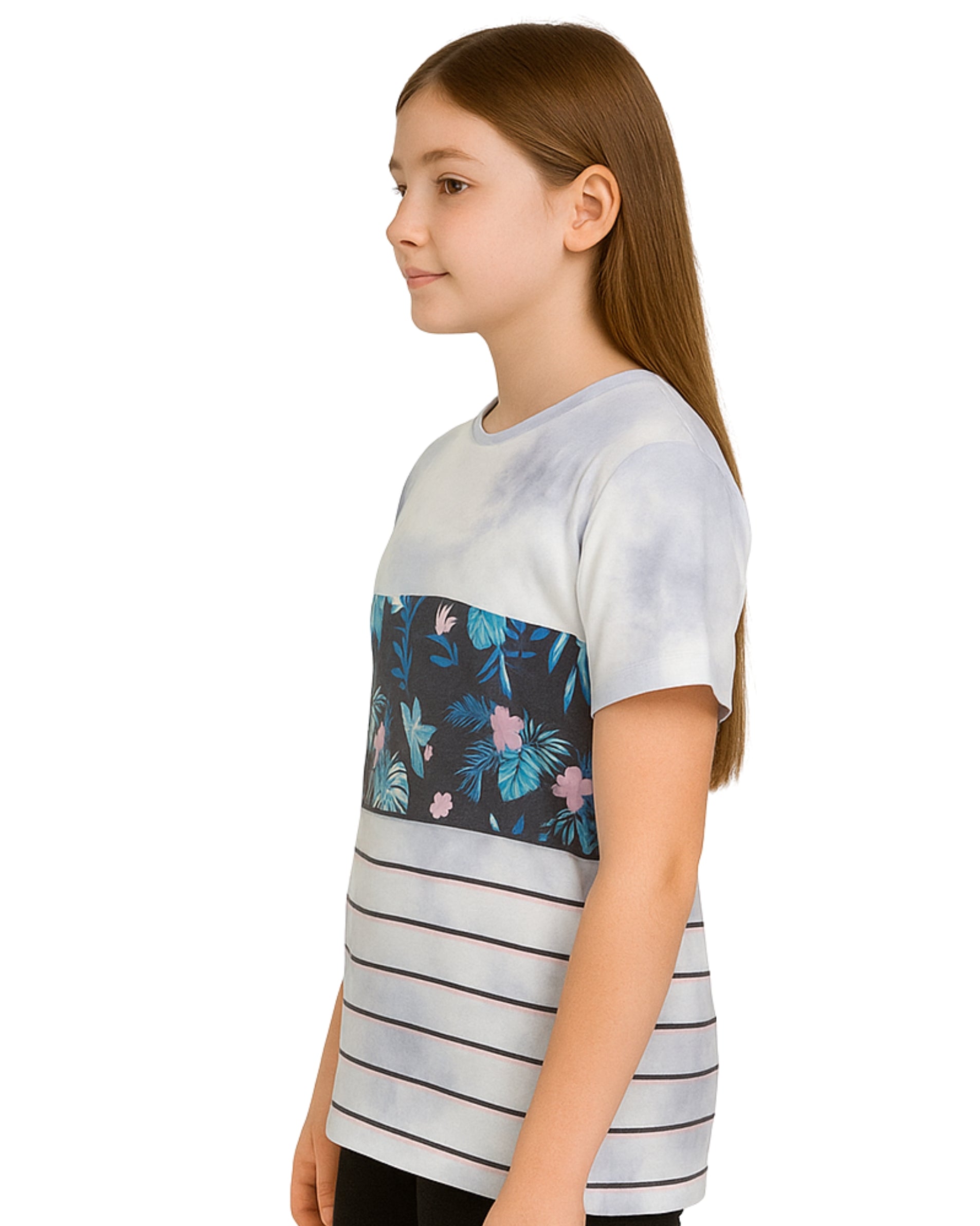 Kids, Girls, Graphics, Short Sleeve, Crew Neck, 55% Coton, 45% Polyester