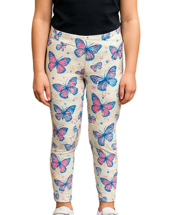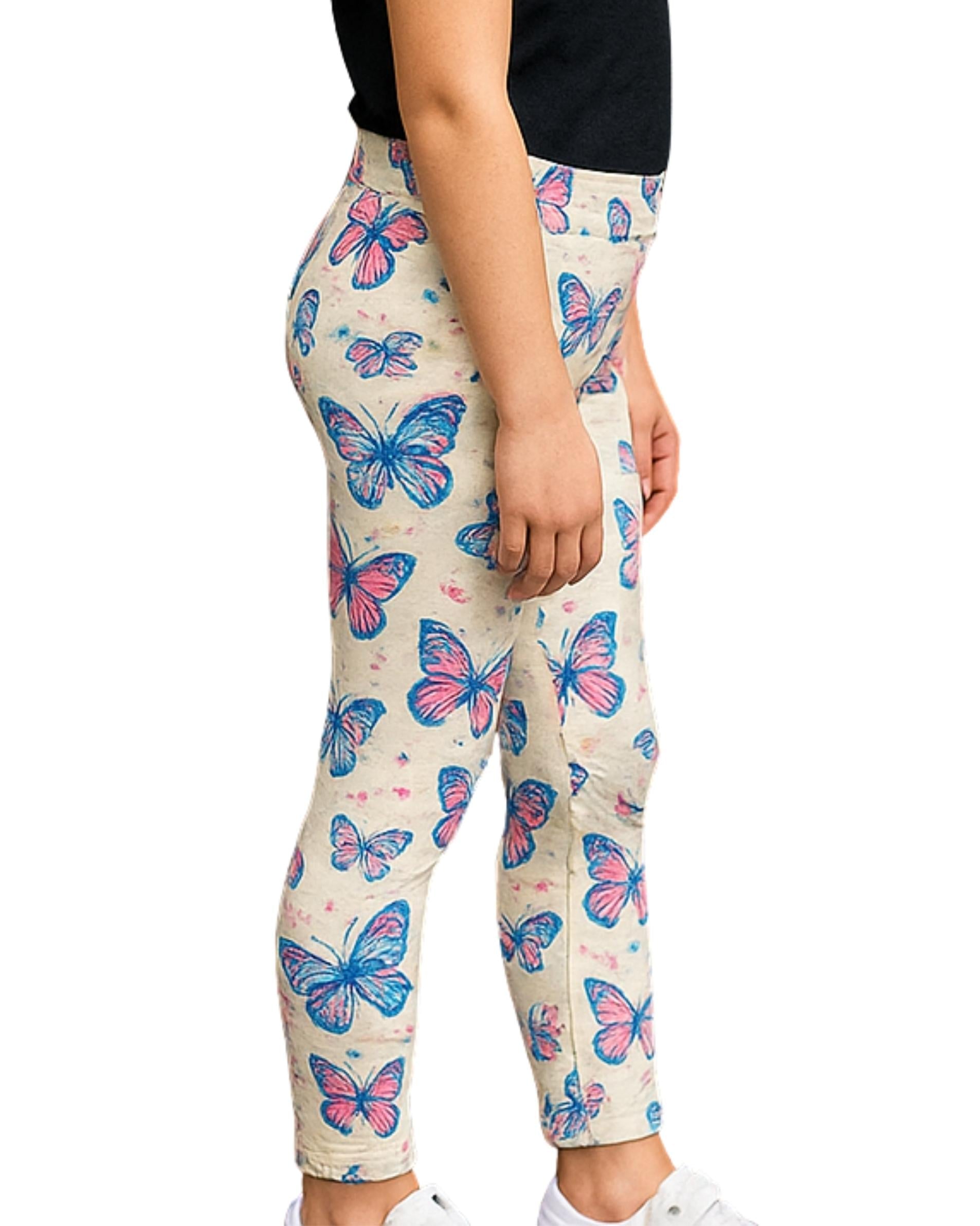 Girls, Pull On, Stretch, 2 Front Faux Pockets, 2 Back Pockets, Butterfly Graphic, Comfort, Casual, 93% Cotton, 2% Polyester, 5% Spandex
