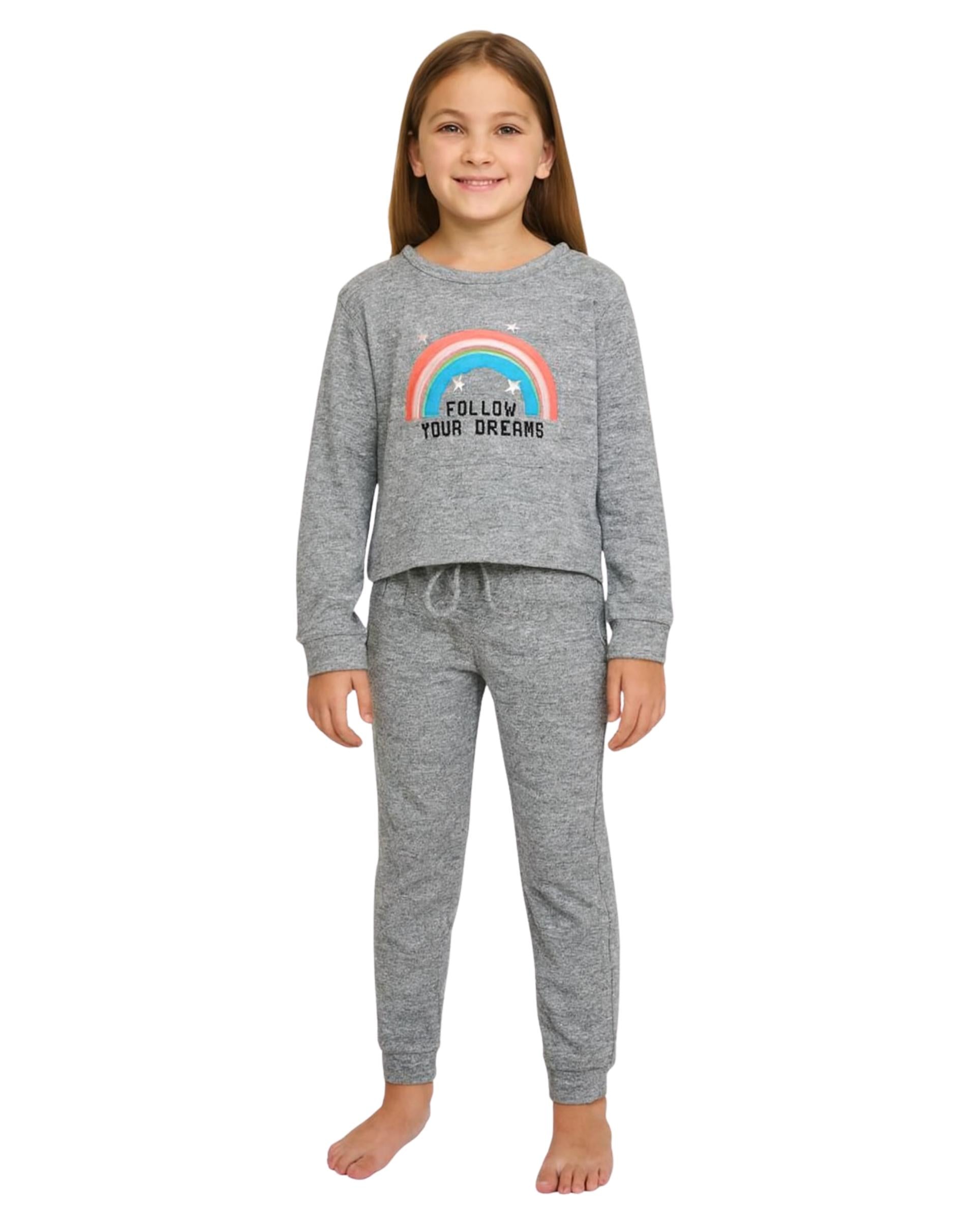 Girls, 2 Pcs, Graphic Long Sleeve T-Shirt, Stretch Pant With Designed Drawstring & 2 Pockets, Fit, Soft Knit, Comfort, 96% Polyester, 4% Spandex