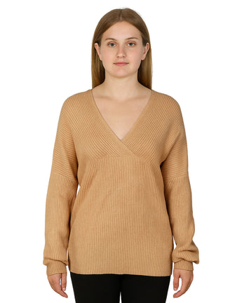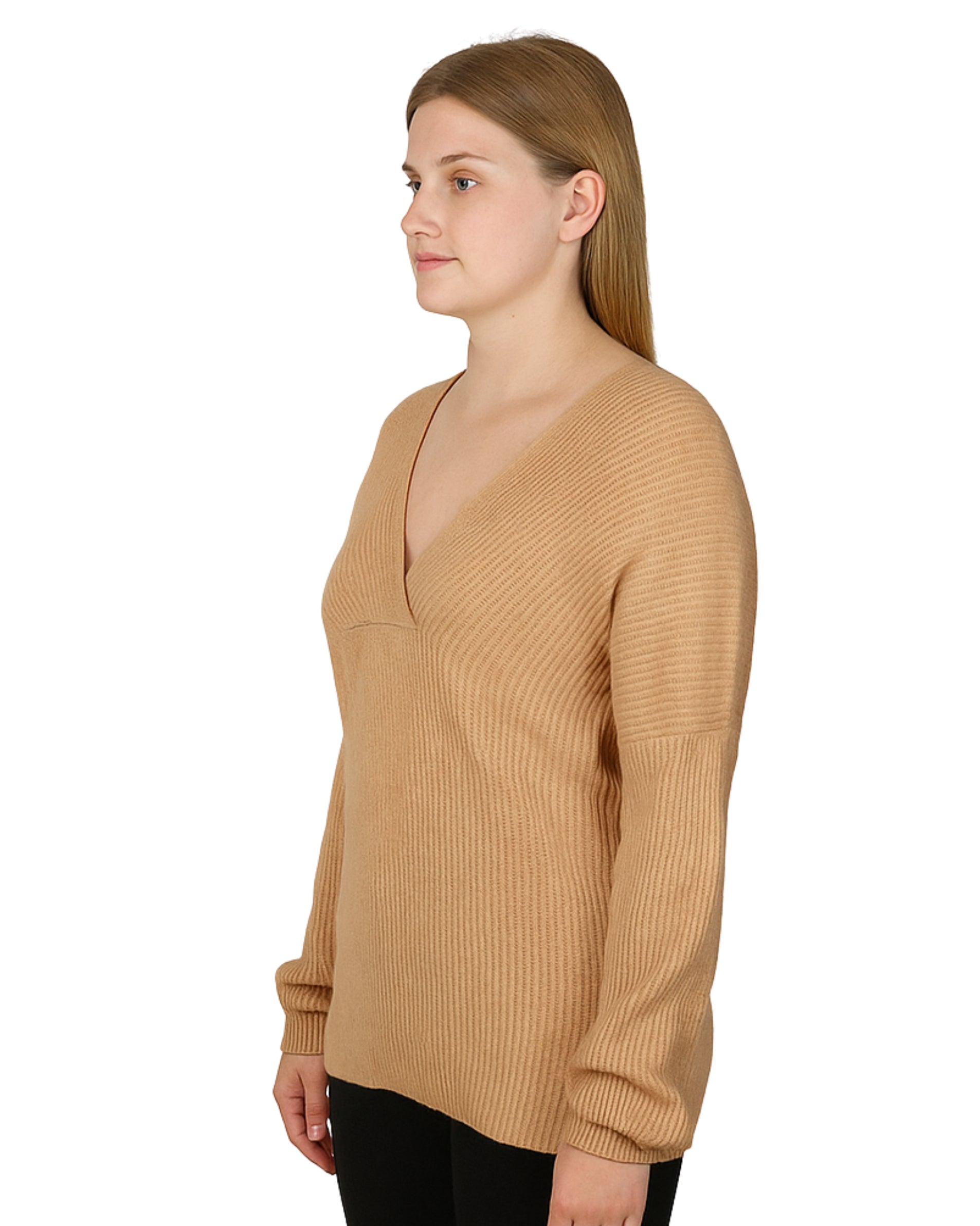 Women, Long Sleeve, V Neck, Stretch, Faux Wool, Warmth, Rib, Stylish & Chick, 50% Rayon, 28% Polyester, 22% Nylon